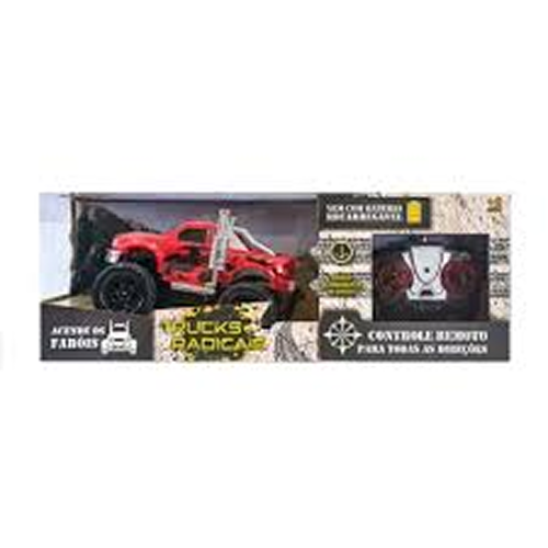 Carrinho com controle remoto, vem com bateria recarregável, acende os faróis, possui alinhamento nas rodas,, controle remoto para todas as direções, na cor vermelho, proibido para menores de 3 anos.
